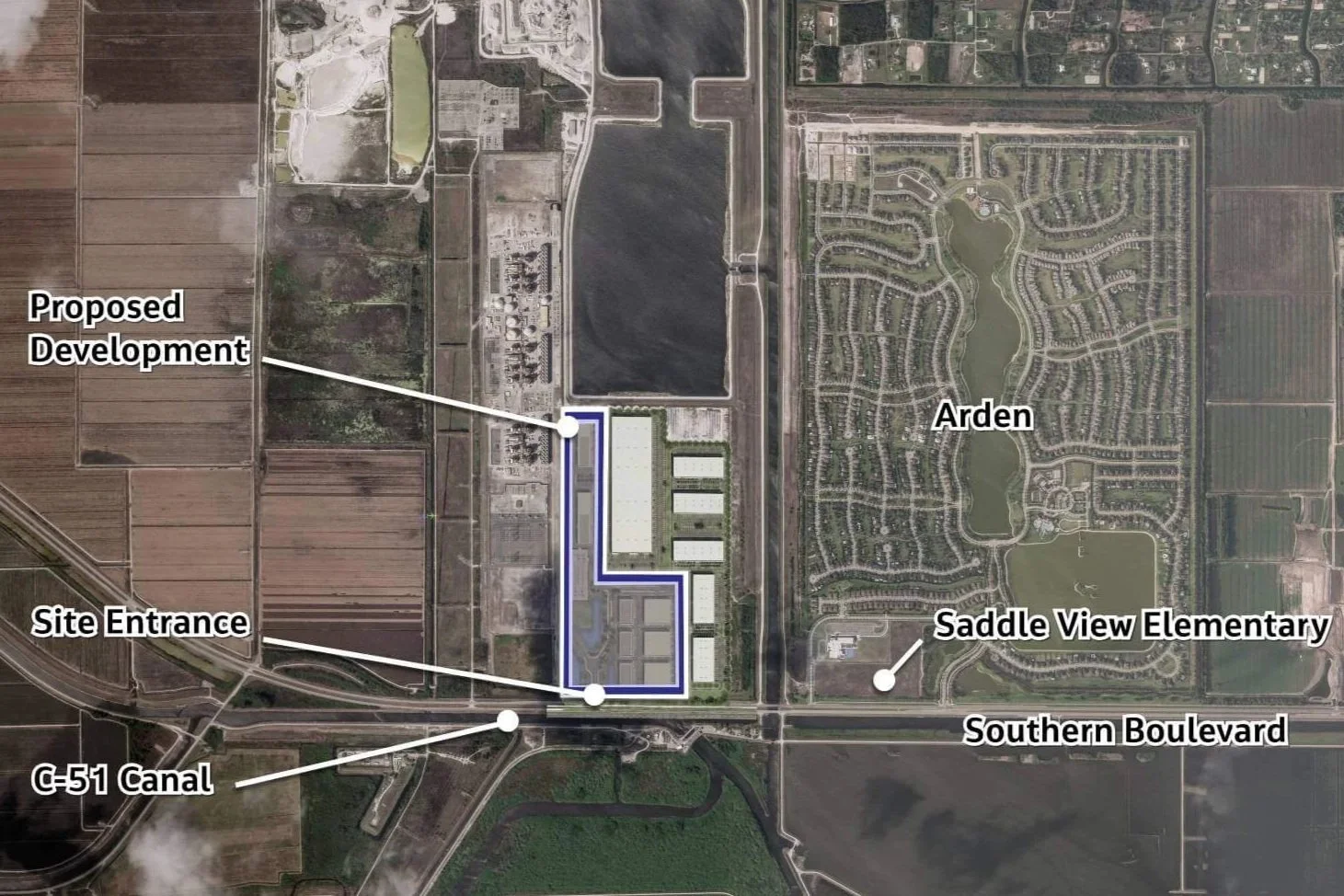 Project Tango is a proposed hyperscale artificial intelligence data center that developer PBA Holdings intends to construct approximately 1,200 feet west of the Arden residential community in Palm Beach County, and less than 1,000 feet from Saddle View Elementary School.